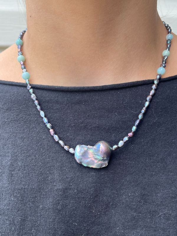 Aquamarine and Pearl with Baroque Pearl