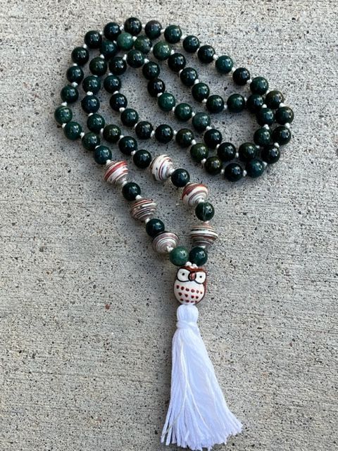 72 Beads Bloodstone and Paper Beads with Owl Guru Bead