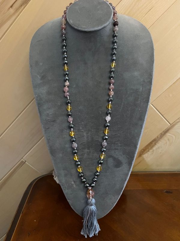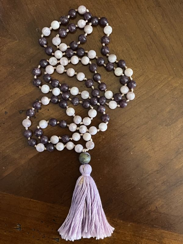 Each mala is made with healing touch energy, love, and in meditation. Each stone chosen for the mala has a benefit or metaphysical meaning. My malas are always handmade and one of a kind, the stones are handpicked and created for the highest benefit of the wearer.