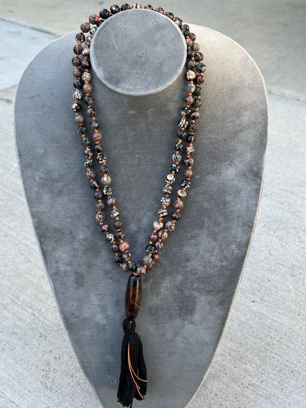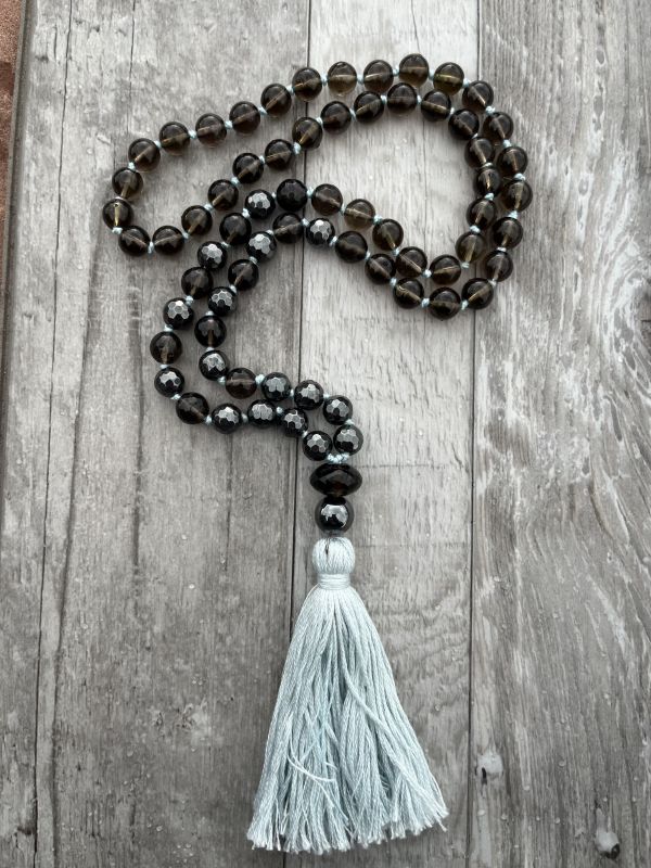 Malas are a Buddhist meditation tool. Each bead is passed through the finger and thumb during a mantra practice. They are generally 108 beads, 72 beads or 54 beads, all adding to the number 9. 9 symbolizes nirvana or completion. And the “guru” Bead is the beginning of the count cycle and the end of the count cycle.