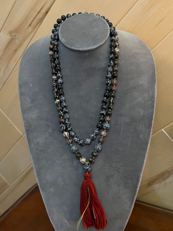 108 beads, Snowflake Obsidian, Red Snowflake Obsidian, Snow flake Obsidian
